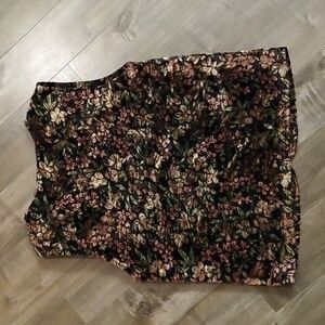 Gives off a tapestry vibe with a romantic vintage touch. Fully lined. Button front. No size or fabric tag but fits like a Medium-Large.