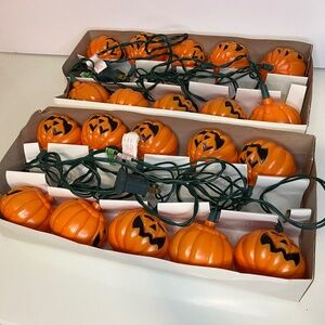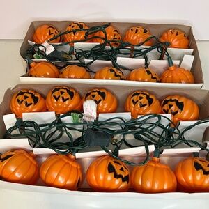 90’s Halloween Pumpkin String Lights - Two Sets of 12 -Blow Mold - Works