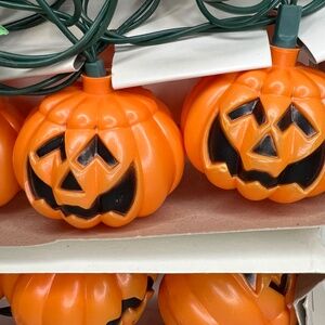 Crafted in the 90s, these lights are a genuine nod to Halloween nostalgia. The durable plastic pumpkin design emits a bright orange glow, creating a cozy and inviting atmosphere. These lights are a unique find for collectors and holiday enthusiasts alike. Have been tested. 23 out of 24 pumpkin lights are working. Come in original boxes. From smoke free home.