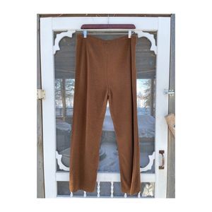 Size 3X on tag. 70% Acrylic, 30% Wool. Made in Korea. Elastic waistband, pull-on, no closures. A Wide, Straight leg makes these a comfortable option as a base layer, as a casual trouser or as loungewear for home. Some light does pass through the knit when held up. It is possible it could become opaque/sheer if the knit is stretched. No stains, holes or tears. Pet and smoke-free studio.