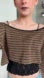 Ultra-90s metallic striped micro sweater by LOUCAS, made in Canada. A unique cropped, shrug-like cut that sits just above the bust — fitted sleeves, boat neckline, and subtle gold shimmer woven throughout.
