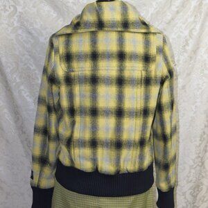 This wool blend Yellow Plaid Bomber Jacket from the 90’s is a wool blend. An excellent condition Le Chateau Clueless style winter coat.
