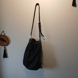Made in Canada. Beautiful leather bucket bag with adjustable cross body strap. In good used condition. Quality leather, in good used condition. Vintage 90s bag