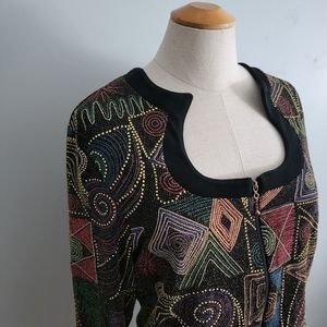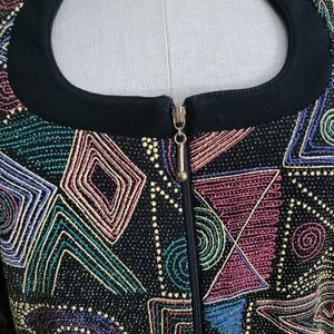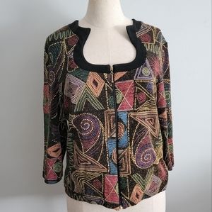 90's Libra Large Retro Zip Up 3/4 Sleeve Fitted Blouse