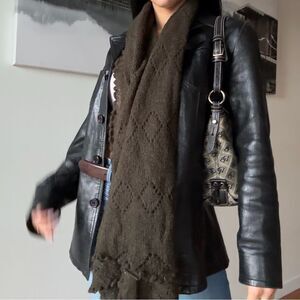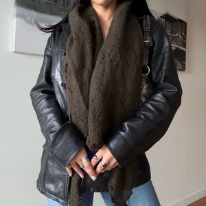 90s Mohair Blend Frilly knit dark khaki/brown large scarf by Carol&CO