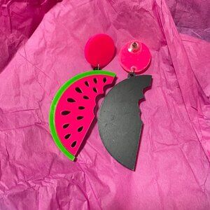 90s Neon Pink and Green Watermelon Slice Statement Earrings