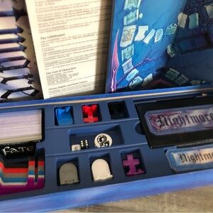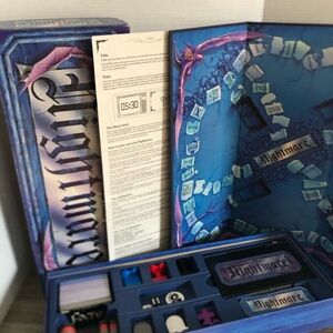Nightmare II has an open box but the VHS inside is sealed from factory and was never used as per the original owner. The original Nightmare game was played but is in very good condition, no pieces missing as far as I can tell. VHS in good shape. Game board itself is like new, the only thing I could see is that there are a couple of bent game pieces (see photo). Overall though these are in excellent condition!!