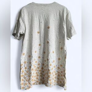 Vintage 90s Northern Reflections Womens Grey Yellow Sunflower Floral Design Cotton V-Neck T-Shirt Medium