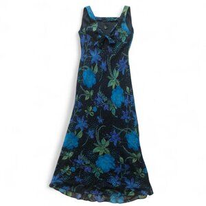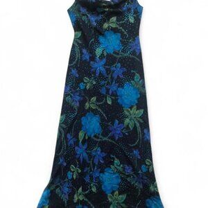 •90s cowl neck digital floral aop NUIT black blue sparkly chiffon-like tie-back fancy tank maxi dress 🌙⭐️