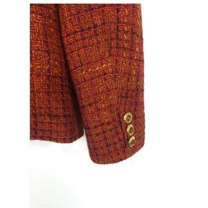 PORTS International Dark Orange Wool Tweed Blazer Jacket, Women’s Size 4
