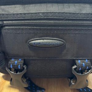 90's Padded Samsonite Camera Bag w Shoulder Strap Many POCKETS BLACK Blue Nylon