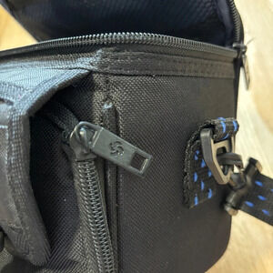 90's Padded Samsonite Camera Bag w Shoulder Strap Many POCKETS BLACK Blue Nylon