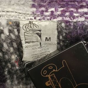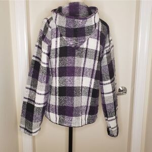 Purple Black & White Checkered Plaid Knit Pullover Hooded Sweatshirt with Kangaroo Pouch Pocket, from Baja Mexico.