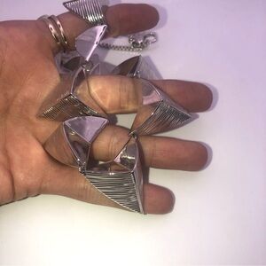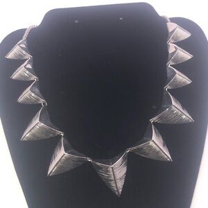 Vintage 1990s St. John Collection collection silver tone geometric puffy triangles with lines detailing large heavy statement necklace.