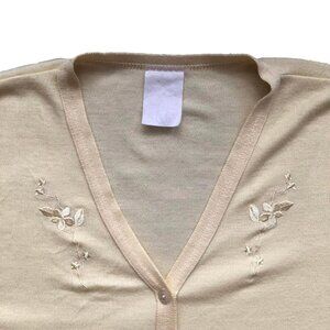 ⋆˚✿˖°adorable vintage 90s STYLE STUDIO pastel yellow flower floral vine embroidered thin grandmacore art teacher button-up long sleeve cardigan