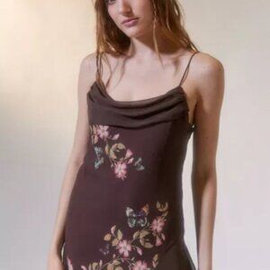 90's Style Urban Outfitters Tierra Chiffon Cowl Neck Assymetrical Midi Dress New