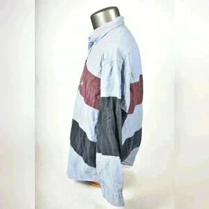 90s TOMMY HILFIGER JEANS Blue Cotton Chambray Patchwork Oversized Shirt Medium