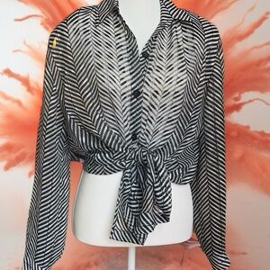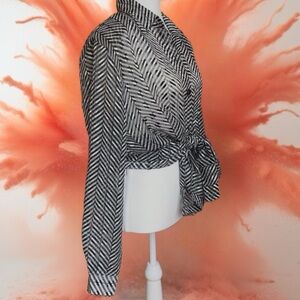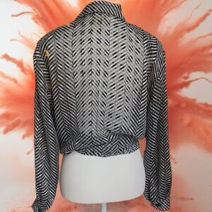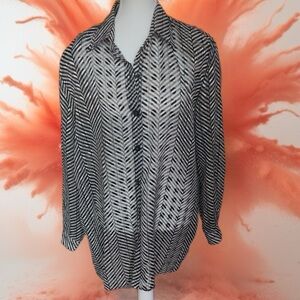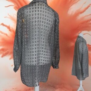 Chic black and white blouse with a stylish pattern. Perfect for pairing with jeans