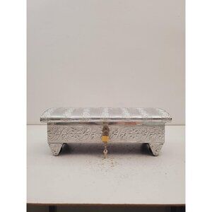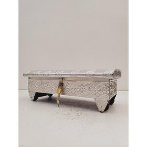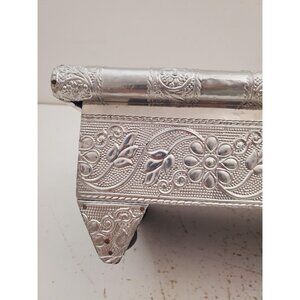 90s Vintage Book Jewellery Box with Latch, Floral Embossed Silver Tone Metal,