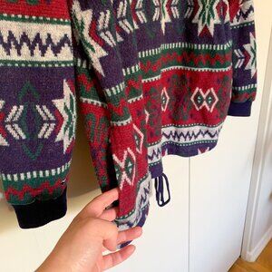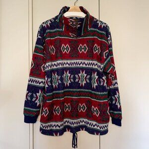 90s Vintage Bruttini Uomo Men's Geometric Mock Neck 3/4 Zip Fleece Sz Large