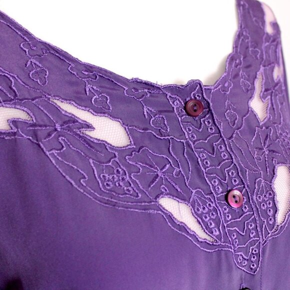 Vintage Button Down Purple Top With Lace Collar by Elite international