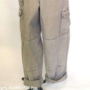 90s Vintage Cotton Oversized Boyfriend Beige 7-pocket Gender Neutral Cargo Pants