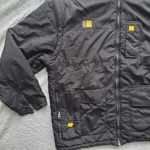 This Vintage Unisex Mickey Mouse Jacket has utility pockets for a phone, headphones and sunglasses, also has removable sleeves.