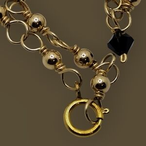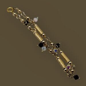 This elegant bracelet features a stunning combination of gold and black beads, perfect for adding a touch of sophistication to any outfit.