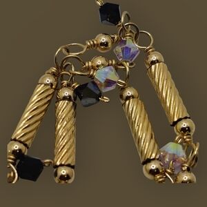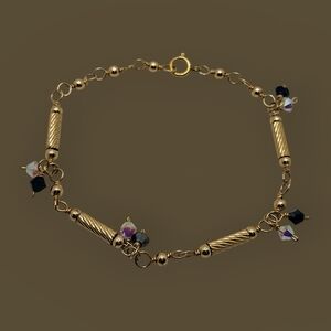 90s Vintage Elegant Gold Tone and Black Beaded Bracelet
