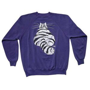 90s Vintage Front Back Cat Cartoon Sweatshirt Purple Crewneck Oldland Comic.