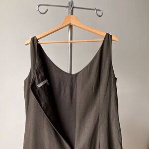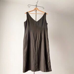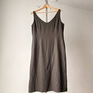🍂 90s Vintage Moka Brown Sleeveless V-Neck Minimalist Cocktail Midi Dress