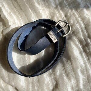 🍂 90s Vintage Navy Blue Minimalist Leather Belt with Silver Buckle by ESPRIT