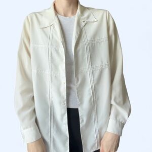 90s Vintage White Alexon Button Up Knit Plaid Design Blouse Shirt Cottagecore Boho