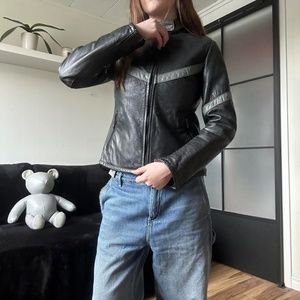 🔥 90s Vintage Wolff Striped Racing Genuine Leather Motorcycle Jacket 🔥