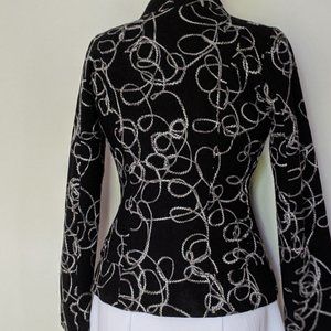 features gorgeous embroidery and funky rose-wire buttons.
