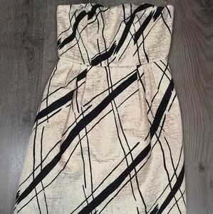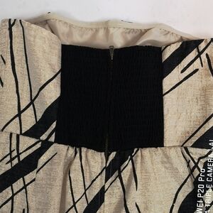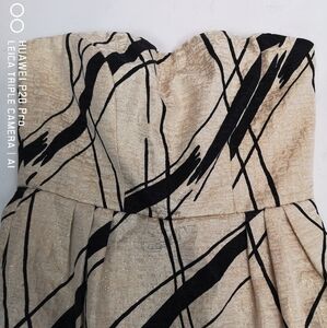 90s Y2K Strapless constructed Abstract print Black and Ecru gold strapless dress