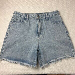 90s Y2K Style Women's Size Large Blue Jean Shorts Jorts Distressed Hem Mom