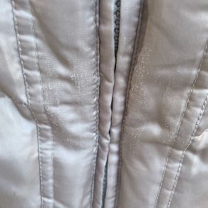 90s Y2K Guess Silver Metallic Satin Down Puffer Jacket Belt