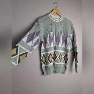 90s geometric pattern knitted sweater Pastel Mondango Made in italy S