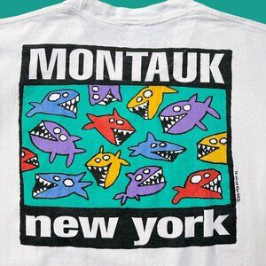 Large "Let The Good Times Roll" people art graphic on front, Large fish art graphic on back