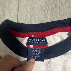 90s vintage Bugle Boy T-shirt Single Stitch White and Blue Size Large