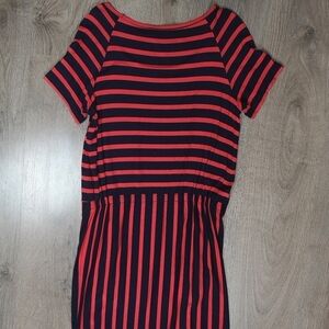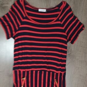 90s vintage Calvin Klein dropped waist midi length striped jersey dress