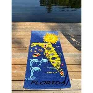 90s vintage Florida map graphic novelty retro travel souvenir cotton beach towel