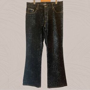 Beautiful vintage 90s velvet pants from Lois. Black velvet jacquard printed pants, with contrast stitching. Bootcut, mid rise, perfect winter pants. Size 32 but fits smaller a 30, there is some stretch. Excellent condition.