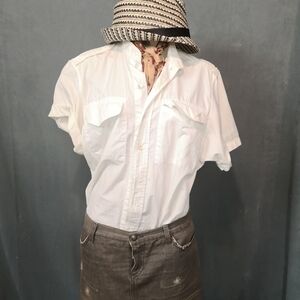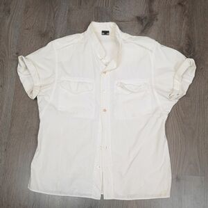 90s vintage classic short sleeve deconstructed Jean Paul Gaultier white button front men's wear shirt