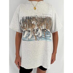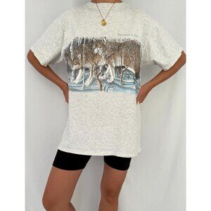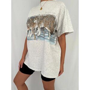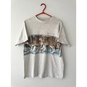90s vintage grey wolf pack animal nature canada graphic short sleeved tee shirt
