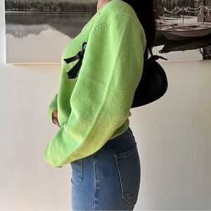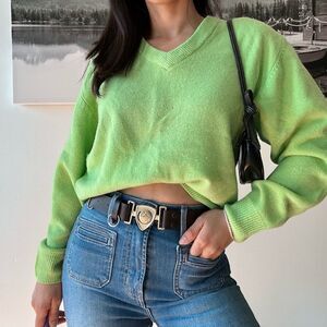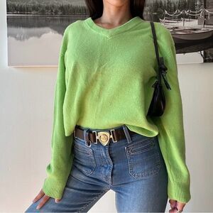 90s vintage minimalist lime green Lambswool Vneck chunky knit vneck sweater