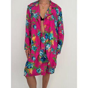 90s vintage pink floral print pure silk blazer skort 2 piece coord matching set