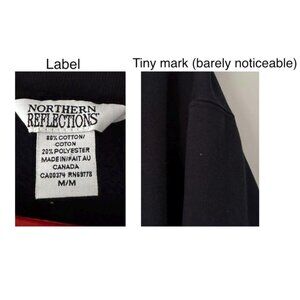 this vintage sweatshirt "made in Canada" by Northern Reflections in the 90s features an adorable printed graphic of cartoon teddy bears on a winter sleigh on the front, and a teddy bear and snowman printed on the back. I love that this sweater gives a nod to the holiday season but it’s not holiday specific meaning that you can wear it for all the winter months, after December too :) the unisex sweatshirt has a dark navy blue body, a crew neckline, long sleeves, and there is some subtle silver glitter in the snow. the fit of the sweatshirt is comfy and boxy, and the fabric is a high quality and heavy 80% cotton blend that is thick with a bit of stretch- perfect for staying warm outdoors or for a cozy night in!