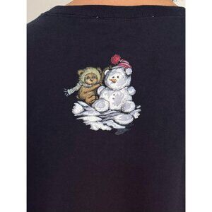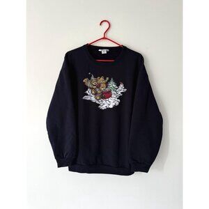 90s vintage teddy bear winter sleigh holiday graphic cotton pullover sweatshirt